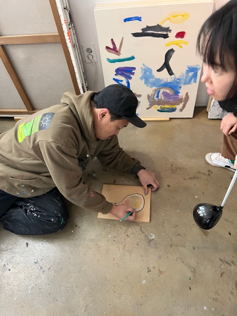 무거운 것을 들었더니 허리디스크가 다시 발생하였습니다. 잠깐 쉬면 다시 움직일 수 있습니다. 쉬는 것은 중요합니다. 오늘은 전대표 백대표 작업실에 놀러왔습니다. 지난번 식사 때 골프채에 그림을 그리기로 했습니다